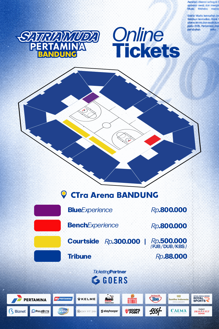 Semua pertandingan home Satria Muda Pertamina musim ini akan dimainkan di Gor Ctra Arena, Kota Bandung, Jawa Barat.